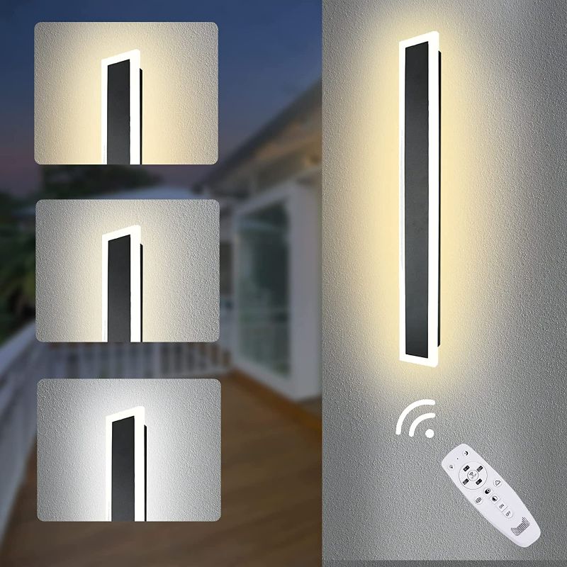 1 LIGHT Bonlux 23.6in Modern Outdoor Wall Light with Remote Control 30W 3-Color-Temperature Changeable Long Outdoor Sconces Wall Lighting IP65 Black Exterior Light Fixture for Porch Garage Patio Hous