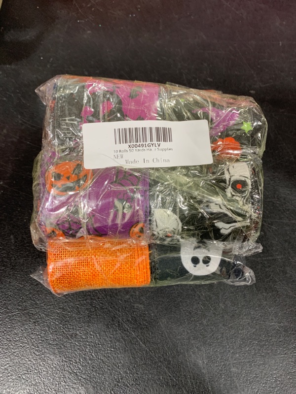 10 Rolls Halloween Ribbon Wired 2.5 Inch 50 Yards Witch Hat Spooky Pumpkin Skull Bat Spider Web Gift Wrap Ribbon Halloween Wired Craft Ribbon for Bow Wreath Craft Supplies Party Decoration