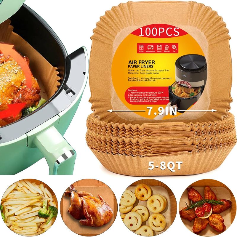 100Pcs Air Fryer Paper 7.9inch Baking Disposable Liner Anti Stick Air Fryer Parchment Paper Food Grade Baking Paper for Roasting Oven (Square)