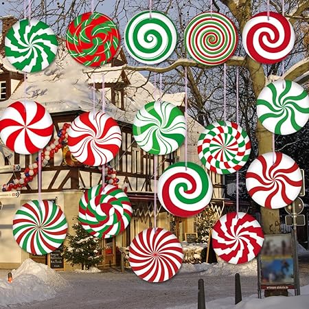 16 PCS Candy Christmas Outdoor Decorations Christmas Tree Hanging Ornaments Peppermint Lollipop Candy Yard Signs Tree Porch Yard Xmas Decor