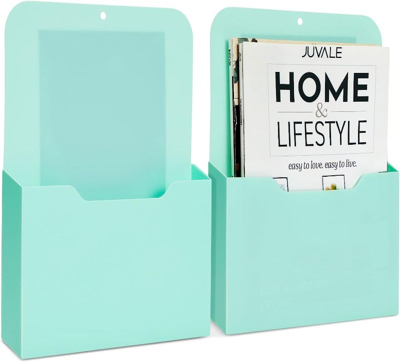 2 Pack Mint Magnetic Wall File Organizer, Storage for Mail, Letters, Paper, Office Supplies (10 x 13 in)