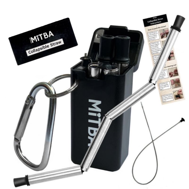 5 PACK REUSABLE STAINLESS STEEL SILICONE DRINKING STRAW ECO FRIENDLY FOLDABLE AND PORTABLE INCLUDES STRAW BLACK ABS CASE CLEANING ROD BY MITBA NEW IN BOX $29.99