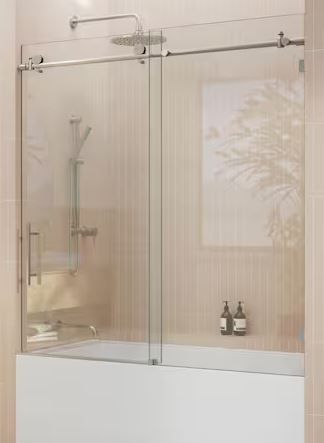 56 in. W x 60 in. H Sliding Frameless Bath Tub Shower Door in Brushed Nickel Finish - single door
