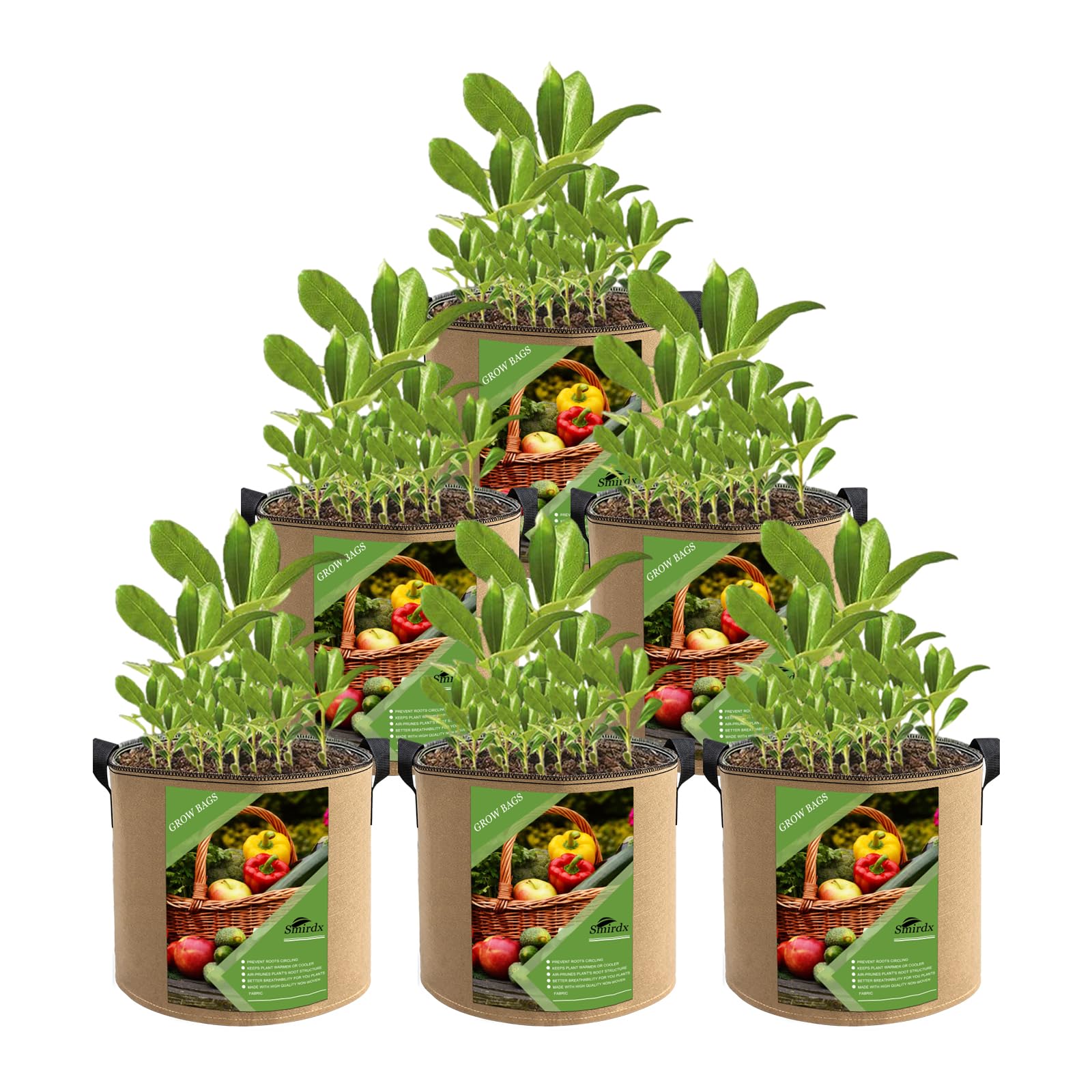 6 Pack Brown Plant Grow Bags with Handles, 1 Gallon Heavy Fabric Raised Garden Bed Pot for Vegetable, Non-Woven Durable Breathe Planting Container for Potato, Carrots, Onions, Flower Dia: 7.1” x H: 8.3” / 1 Gallon Brown