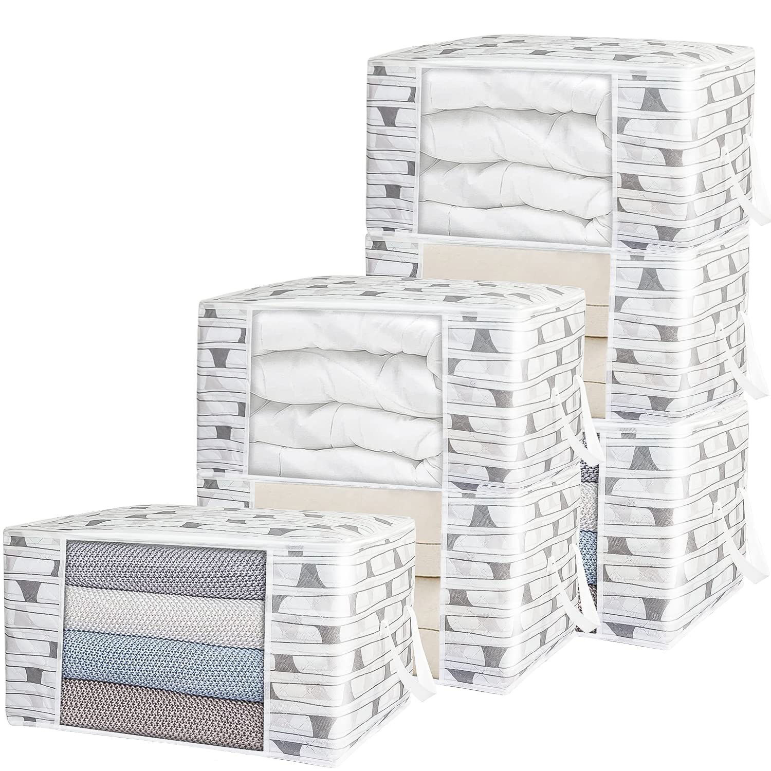 95L Large Storage Bags, 6 Pack Clothes Storage Bins Foldable Closet Organizers Storage Containers with Durable Handles Thick Fabric for Clothing, Comforter, Blanket,Bedding and Toys (Grey) Grey 6 PACK