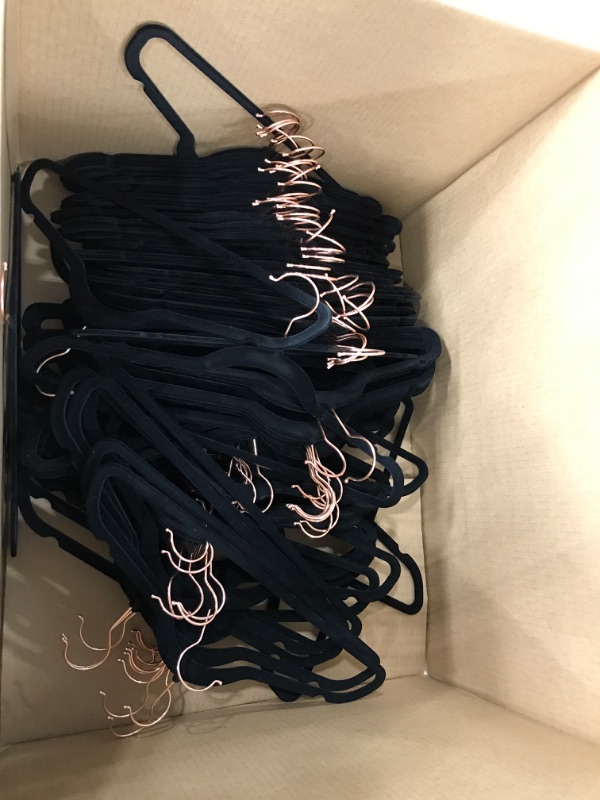 Photo 1 of Amazon Basics Slim, Velvet, Non-Slip Suit Clothes Hangers, Black/Rose Gold - Pack of 100 Black/Rose Gold 100-Pack Suit Hangers