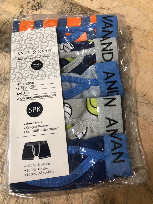 Andy & Evan Boys Boxer Briefs Super Soft 100% Cotton Tagless 5-Pack SIZE:4-6 S