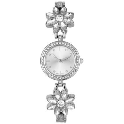 Charter Club Women's Silver-Tone Mixed Metal Crystal Flower Bracelet Watch, 25mm, Created for Macy's