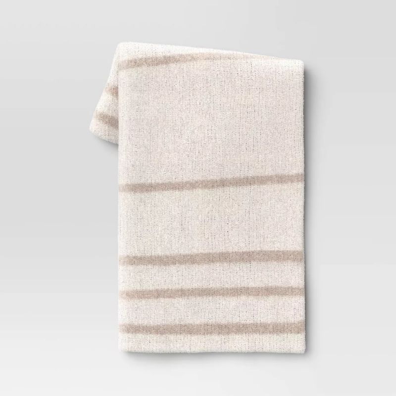 Cozy Feathery Knit Border Striped Throw Blanket - Threshold™