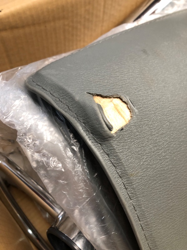 ***DAMAGED - TORN - SEE PICTURES - HARDWARE MISSING*** Set of 2 Barstool, Adjustable Swivel Bar Stools with PU Leather and Chrome Base, Gaslift Pub Counter Chairs, Grey