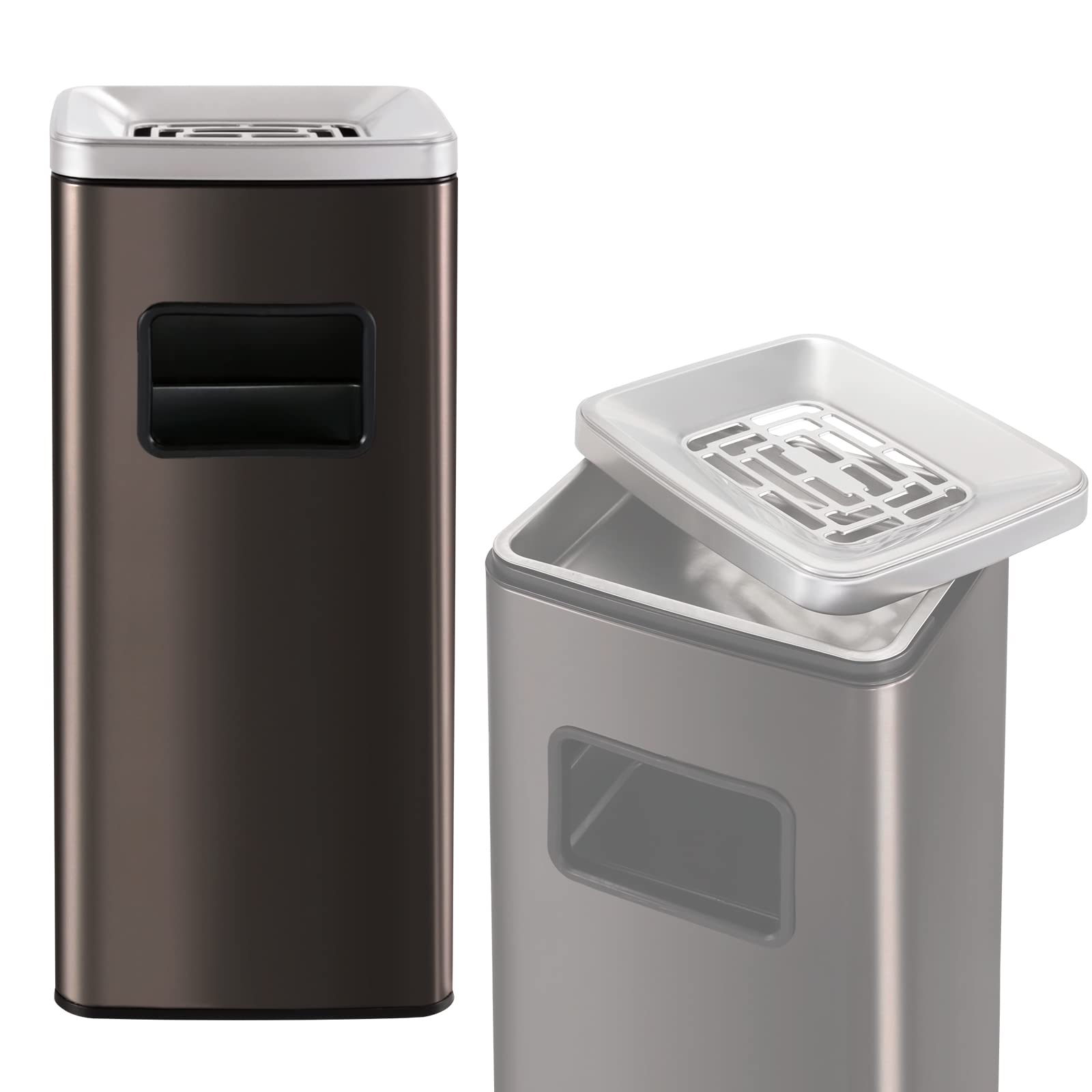 (Dented)IRONWALLS Indoor Outdoor Garbage Can, Black Stainless Steel Commercial Trash Can with Lid, Industrial Waste Container, Decorative Trash Receptacle for Patio, Shopping Center, Office