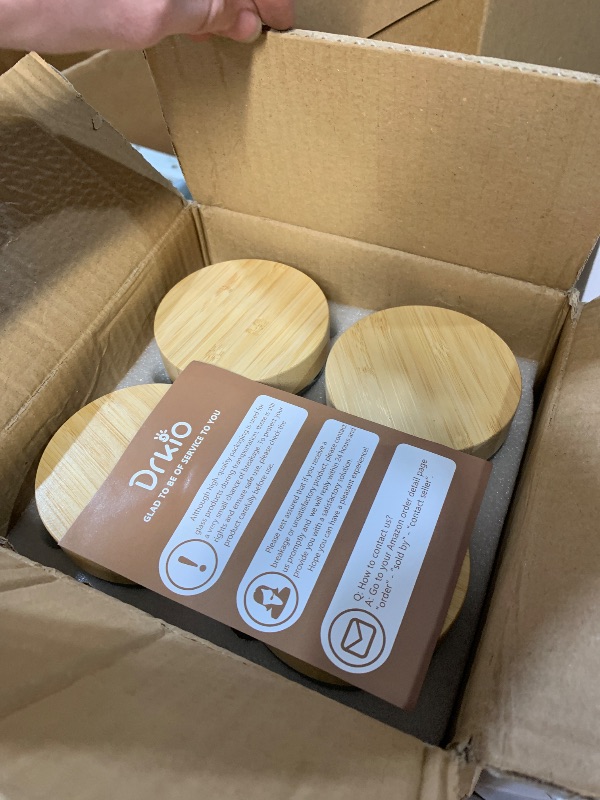 (FAIR) DRKIO 16 Oz Overnight Oats Containers with Bamboo Lids - 4 Pack Glass Storage Jars with Airtight Lids Wide Mouth Mason Food Jars Great for Meal Prep Salad Chia Pudding Snacks Yogurt Sugar Spice Cereal