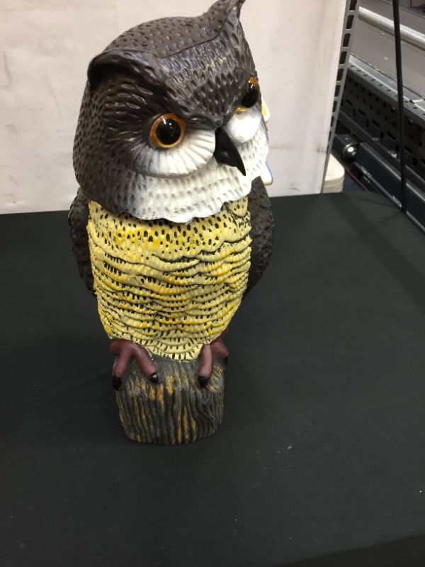 Fake Owl Scarecrow Sculpture with Rotating Head for Outdoor Garden Yards