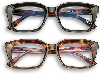 GINGEREYE Oversized Reading Glasses for Women 2-Pack, Retro Oprah Style Square Blue Light Blocking Computer Readers