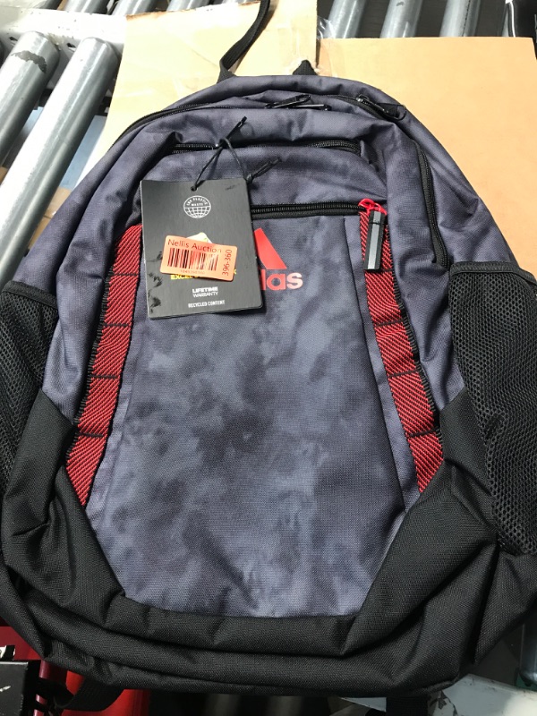 (HOOK LOOP DAMAGED) adidas Excel Backpack Durable Large Athletic Student Laptop Book Bag for Boys/Girls Discontinued, Stone Wash Carbon/Vivid Red, One Size