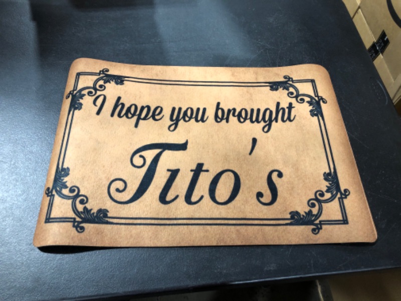 "I hope you brought Tito's" door mat