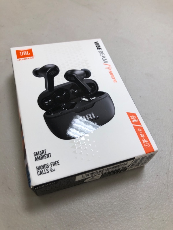 JBL Vibe Beam - True Wireless JBL Deep Bass Sound Earbuds, Bluetooth 5.2, Water & Dust Resistant, Hands-free call with VoiceAware, Up to 32 hours of battery life (Black)----sealed