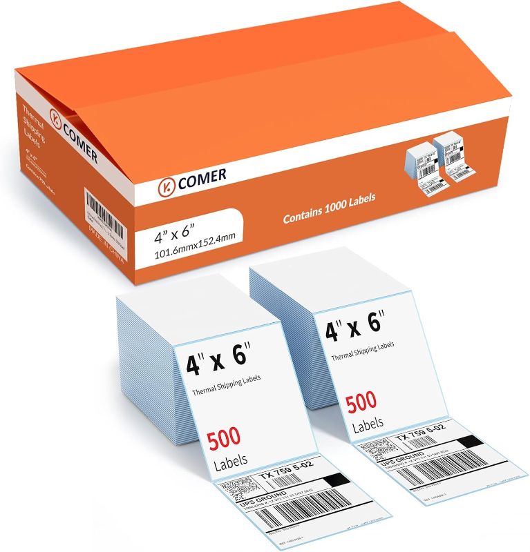 K Comer 4x6 Thermal Shipping Labels (2 Stacks, 1000 Printer Labels) Stickers Printable,Waterproof,Self Adhesive,Mailing Address Labels for Packages Compatible with K Comer MUNBYN, Rollo