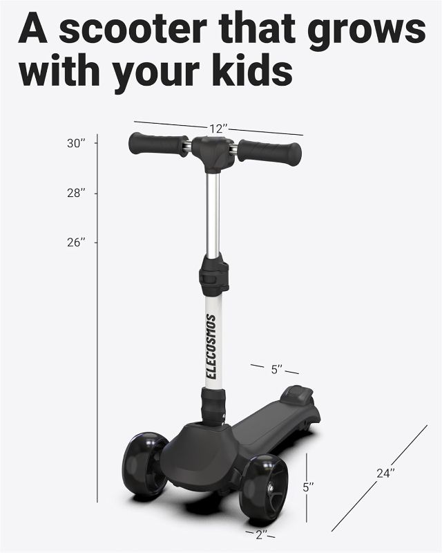 (LIGHTS NOT WORKING) (USED/FAIR) (MISSING CHARGER) ELECOSMOS Electric Scooter for Kids Ages 6-8, 3 Wide PU Wheels with LED, Long Battery Life, 3 Wheel Folding Kick Scooter for Kids Ages 6-12, 4-6, Girls, Toddlers, Pink