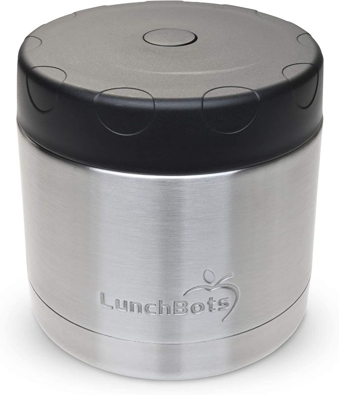 LunchBots 16oz Thermal Stainless Steel Wide Mouth - Insulated Container With Vented Lid - Keeps Food Hot or Cold for Hours - Leak-Proof Portable Thermal Food Jar is Ideal for Soup - 16 ounce - Black