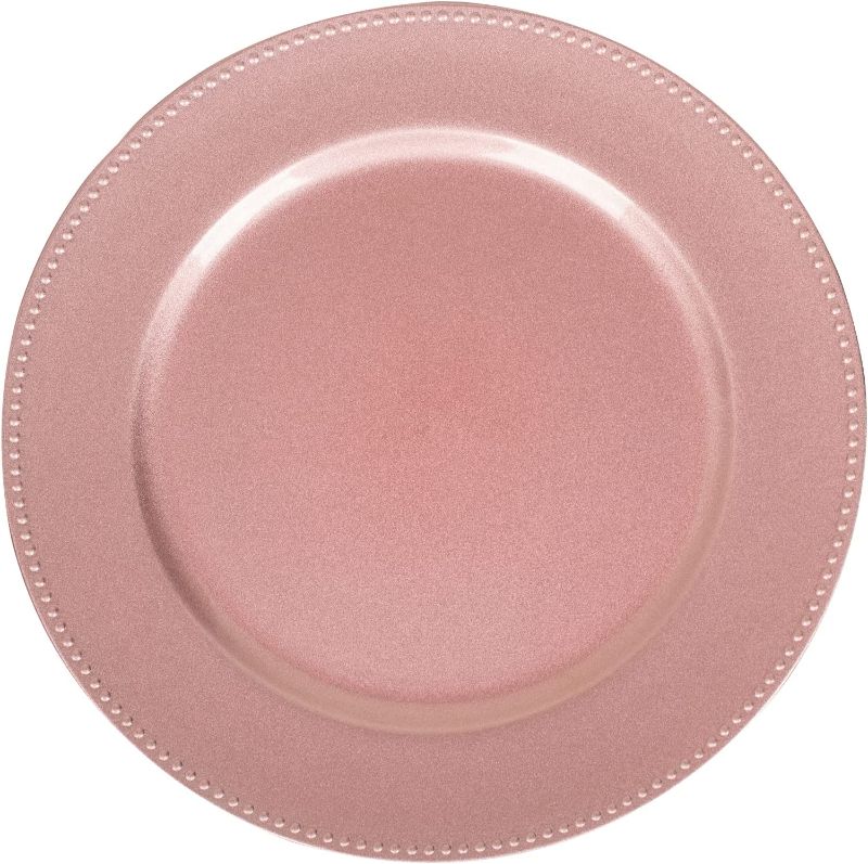 MAONAME 13" Pink Charger Plates, Plastic Charger Plates with Beaded, Round Chargers for Dinner Plates, Plate Chargers for Wedding, Table Decor, Set of 6