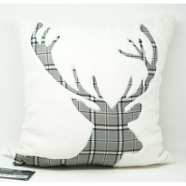 Martha Stewart 18" Mongolian Faux Fur Decorative Pillow Plaid Reindeer - White