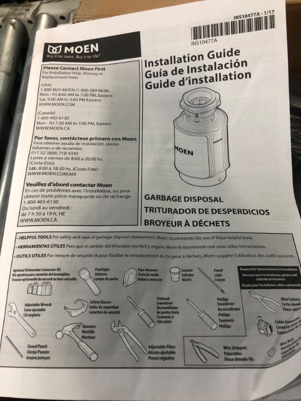 **NON-REFUNDABLE-SEE COMMENTS** Moen GXB75C Host Series Control Activation 3/4 HP Garbage Disposal with Sound Reduction, Power Cord Included Batch Feed 3/4 HP Garbage Disposal