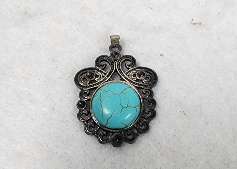 Photo 1 of Pendant Charm Antique Silver Tone With Faux Turquoise Stone