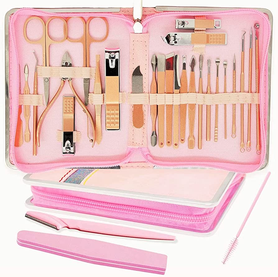 Professional Manicure Set Nail Clippers Pedicure Kit, 26 in 1 Rose Gold Stainless Steel Travel Nail Kit Manicure Nail Tool Set for Complete Personal Care & Grooming Needs of Women and Men