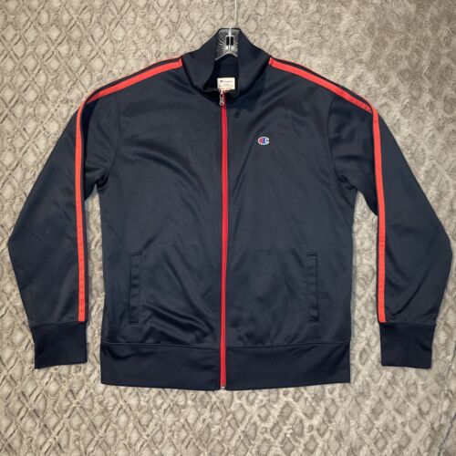 SIZE LARGE CHAMPION MEN'S TRACK JACKET FULL ZIP NAVY/RED