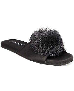 Size S 5/6 INC International Concepts Women's Satin Pom Pom Slide Slippers Black