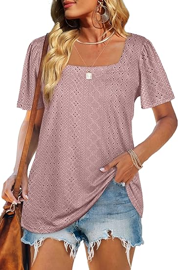 WIHOLL Womens Summer Tops Casual Square Neck Puff Short Sleeve T Shirts Size M