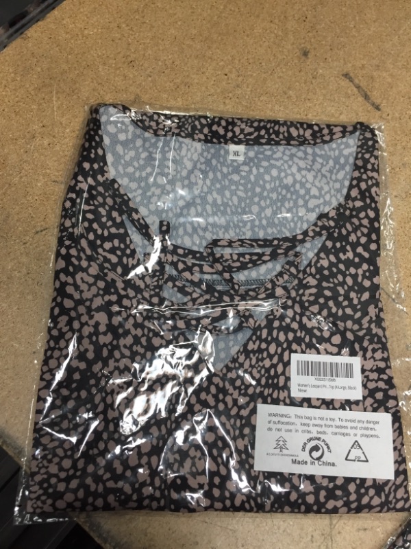Women's Leopard Print Long Sleeve Lace up V Neck High Low Blouse Top (XL)