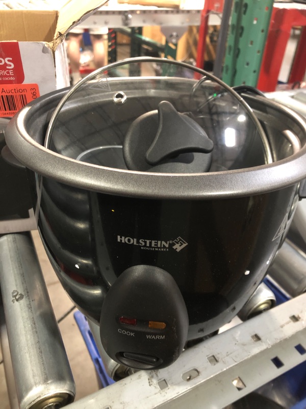 (damaged)(used)(see images)Holstein Housewares 16-Cup Cooked (8-Cup Uncooked) Rice Cooker, Black – One-Touch Operation with Cook