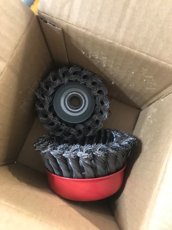(read notes) uxcell 3-Inch/2-Inch Wire Cup Brush Twist Knotted Crimped Steel with Threaded Hole for Grinder 2 Pcs