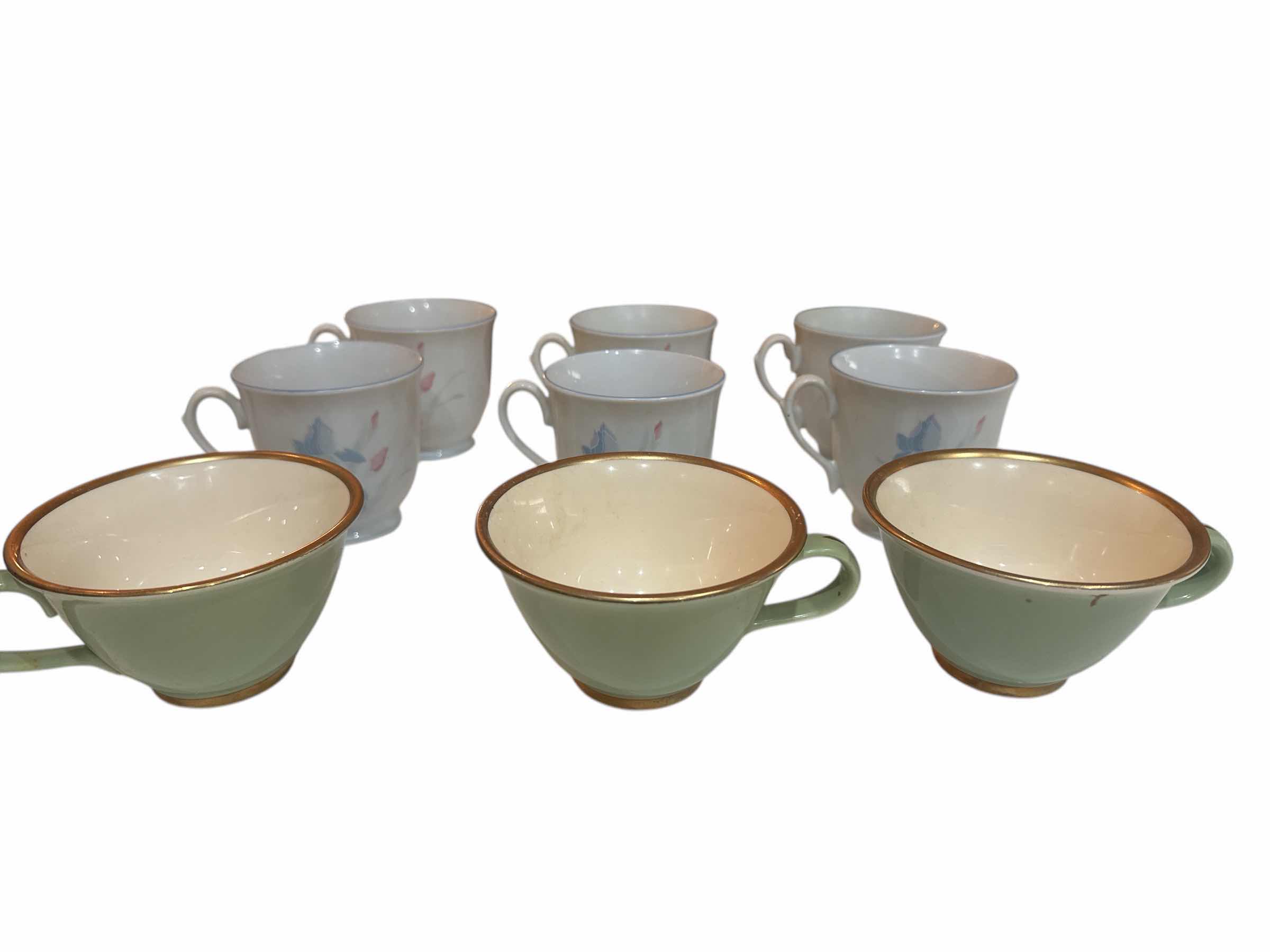 5 -TAYLOR & SMITH CLASSIC HERITAGE CELADON GREEN TEA CUP 6-FRESH FLOWERS BY EXCEL IRIS" FOOTED CUP