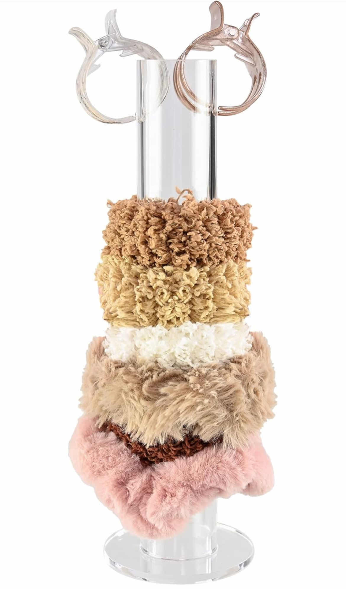 CASE OF 16 HOME-X ACRYLIC HAIR-TIE ORGANIZER, STYLISH CLEAR PLASTIC STAND FOR HOLDING PONYTAIL HOLDERS, BRACELETS, HAIR CLIPS, AND OTHER ACCESSORIES, 9 ¾” L X 3" D, CLEAR