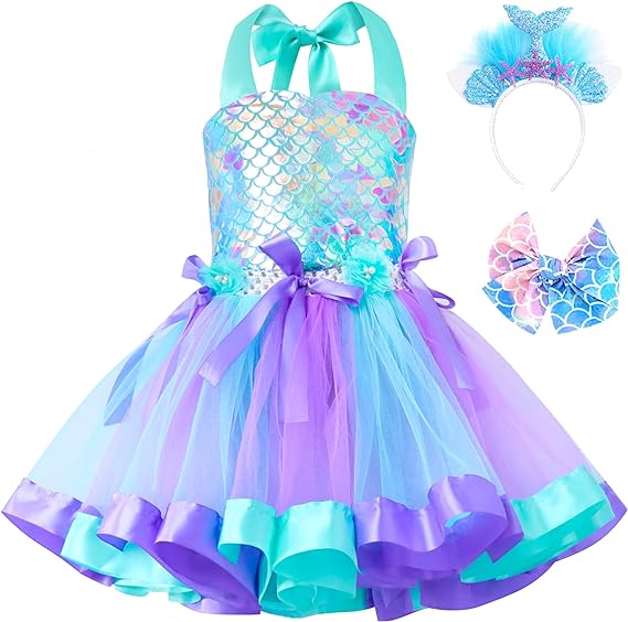 Doctor Unicorn Girls Mermaid Costume Outfit Set Tutu Mermaid Dress with Headband 5-6 YO