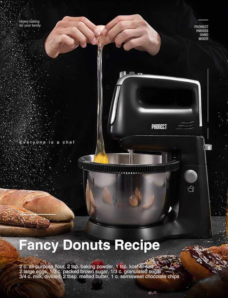 NEW PHONECT ELECTRIC STAND MIXER W DETACHABLE HAND MIXER, 3.7 QT STAINLESS STEEL ROTATING BOWL, 5 SPEED & TURBO FUNCTION W 2 BEATERS/2 DOUGH HOOKS, 250W (BLACK)