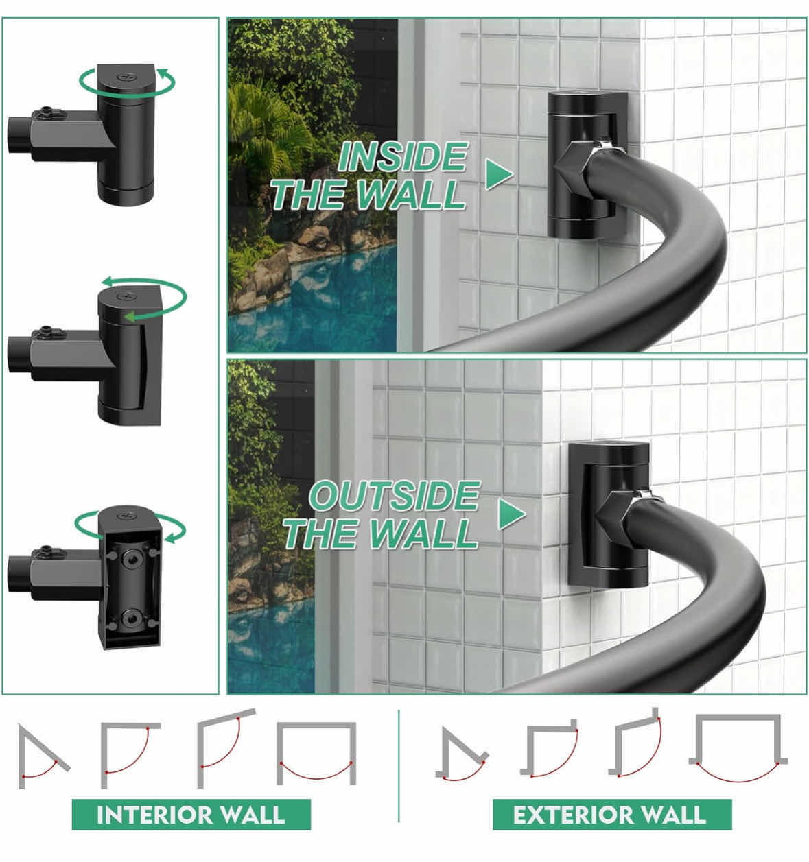 NEW PRETTY HOME ADJUSTABLE ARCHED/CURVED SHOWER CURTAIN ROD, RUSTPROOF EXPANDABLE ALUMINUM METAL SHOWER ROD 38”-72”, BLACK (NEED TO DRILL)