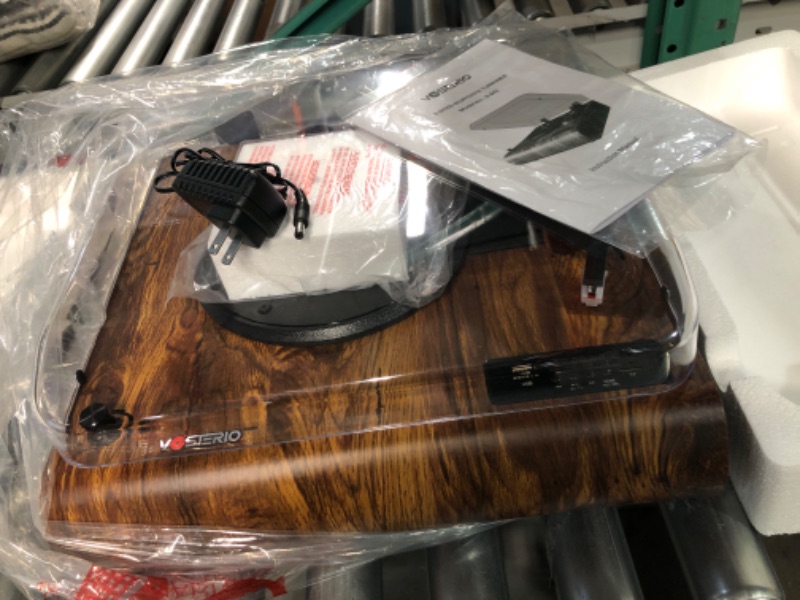 VOSTERIO Bluetooth Record Player, 3 Speed Turntable with Built-in Speakers, BROWN