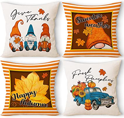 Ywlake Fall Throw Pillow Covers 24x24 Set of 4, Navy Blue and Orange Decorative Seasonal Holiday Autumn Pumpkin 24 x 24 Cushion Pillow Cases for Indoor Home House Bedroom Couch Decor sealed